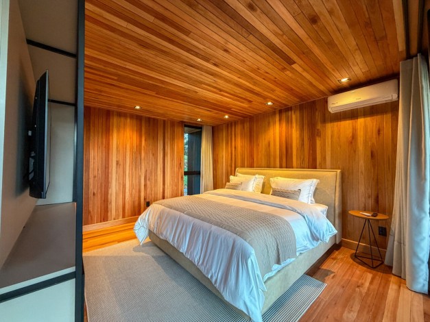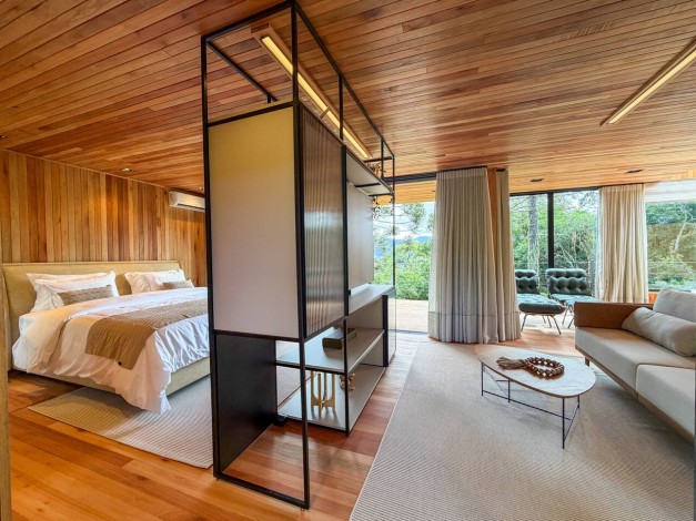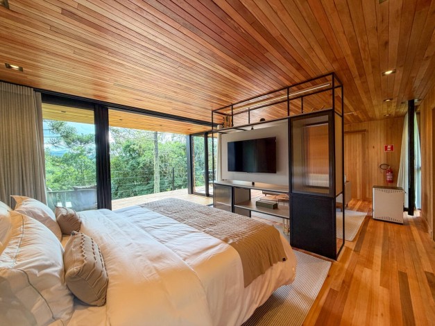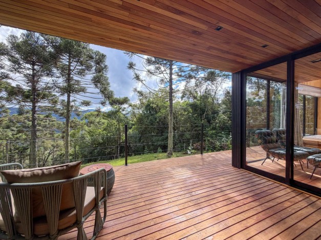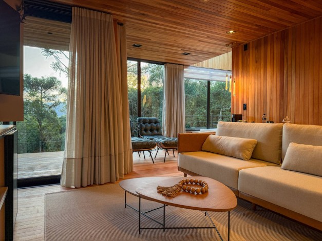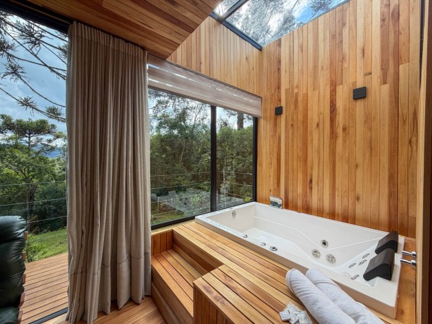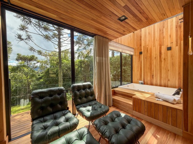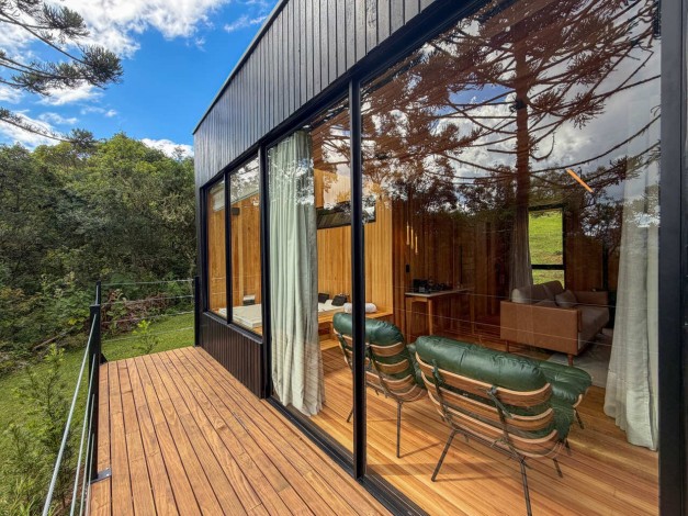Kajo significa brilho e luz na língua finlandesa, uma referência direta ao sol que ilumina as colinas de Urubici. Com generosos 90 m², esta cabana é um santuário de amplitude e claridade. Projetada para emoldurar a luz natural, a Kajo transforma a paisagem em arte viva, oferecendo um espaço de luxo onde cada detalhe foi pensado para elevar o bem-estar e celebrar o espetáculo do amanhecer na serra.