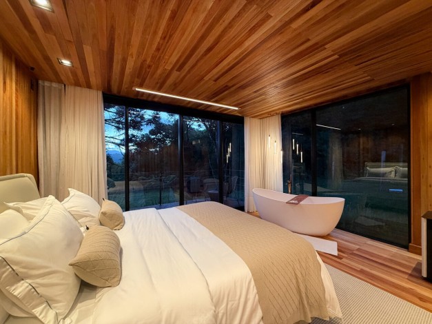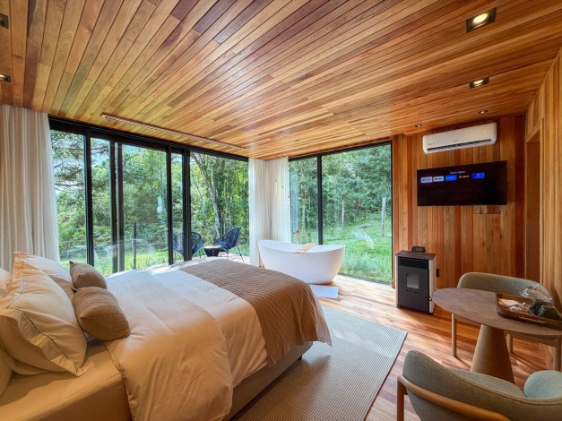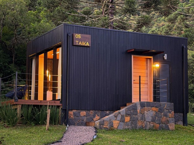 Taika representa a magia e o encantamento que cercam o espírito Mökki. Esta cabana de 40 m²  foi concebida para ser um refúgio lúdico e envolvente, onde o tempo parece parar e a realidade se transforma em sonho. Ideal para casais que buscam uma atmosfera íntima e mística, a Taika oferece uma imersão sensorial completa sob o céu estrelado de Urubici.