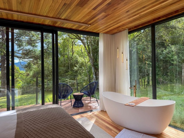 Momentos de autocuidado e purificação na banheira Sabbia, cercada pelo minimalismo escandinavo.